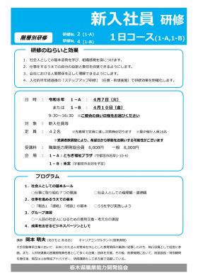 令和8(2026)年度の新入社員研修について、日程が決まりましたのでご案内いたします。御社人材の育成、定着のためご活用ください。